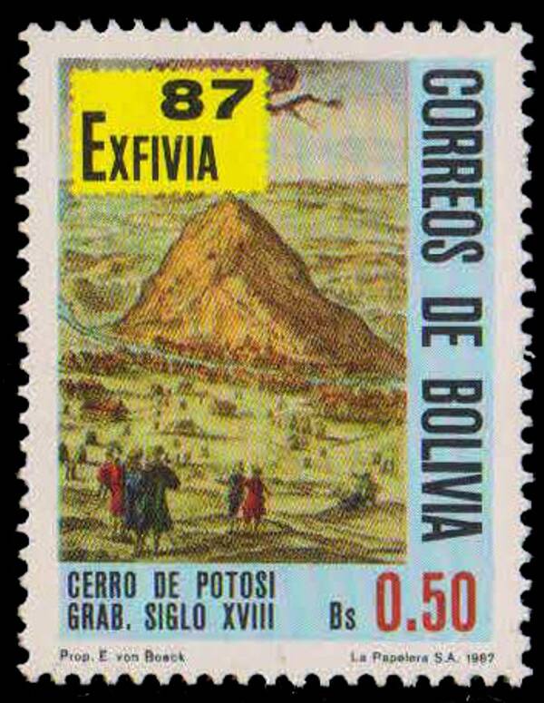 De “Cerro Rico” zilvermijn in Potosi – Bolivië en het klooster van de Dominicanen in de XVIIIe eeuw.