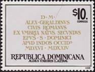 D(eo) - M(aximo) Alex Geraldinus - civus Romenus - ex umbria natus secundus - epus (episcopus) - dominici apud indios occids (dentalis)
